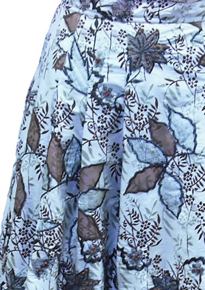 ジャンルタックスカートコンセプト両サイドに深めの3ヶプリーツが、スカートのほど良い広がりが出ていてエレガントに仕上がりました。使用生地インドシルク・ビーズ刺繍オーダー期間約2週間